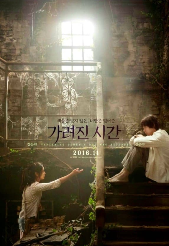영화 가려진 시간은 2016년에 개봉한 대한민국의 판타지 영화이다. 강동원과 신은수가 주인공이며 엄태화 감독이 연출했다. 영화는 이렇게 시작된다. 엄마와 사별한 뒤 새아빠 도균과 화노도로 이사를 온 수린은 자신의 블로그에 유체이탈에 대한 글을 남길 만큼 영적인 세상에 관심도 많고 남들과는 달리 독특했던 외로운 아이이다. 새아빠인 도균은 딸아이에게 무관심했고, 수린 역시 엄마의 부재와 새아빠와 둘이 사는 생활로 큰 스트레스를 받고 있었다. 전학을 간 학교에서도 이상한 아이라고 소문이 나는 바람에 친구 하나 없는 외톨이 신세이다. 홀로 지내는 수린에게 같은 학년 남학생인 성민이 먼저 다가갔고 둘은 친구가 된다. 그리고 성민의 친구 재욱과 태식 넷이서 다니게 된다. 그러던 어느 날 아이들은 공사장 터널이 폭발하는 걸 보려고 어른들 몰래 출입금지 구역으로 들어가게 되는데 거기서 정체 모를 동굴을 발견한다. 동굴 속 연못에는 정체를 알 수 없는 알이 있었고, 호기심에 알을 가지고 나온 아이들, 하지만 수린은 엄마의 머리핀을 동굴에 흘리는 바람에 다시 동굴 안으로 되돌아갔는데 그 사이 터널이 폭발했다. 수린은 허둥지둥 동굴을 빠져나왔지만 문제의 알은 깨져 있었고, 동굴 밖에서 자신을 기다린다고 한 세 아이들은 감쪽같이 사라지고 없었다. 수린은 늦은 시간까지 아이들을 찾아 헤맸지만 아아 이들은 어디에도 없었다. 다음날 아이들의 실종으로 동네는 뒤집어졌고 숲 속에 쓰러져 있던 수린만 발견되었다. 이후 수린의 기억을 토대로 동굴을 찾고 있던 그때 놀이터 모래바닥에 재욱이 죽은 채로 파묻혀 있었다. 재욱의 죽음으로 화노도 사건은 세상에 알려지게 되고 수린은 홀로 아이들이 실종된 장소에 왔다가 자길 성민이라고 주장하는 낯선 청년을 만나게 되는데 과연 수린이는 성민이의 이야기를 믿을 수 있을까?