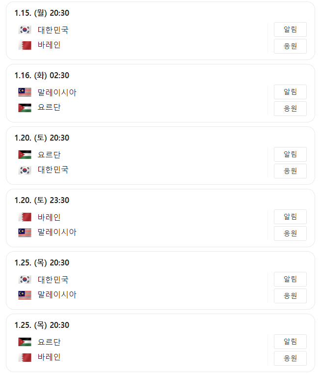 E조: 말레이시아, 요르단, 바레인, 대한민국