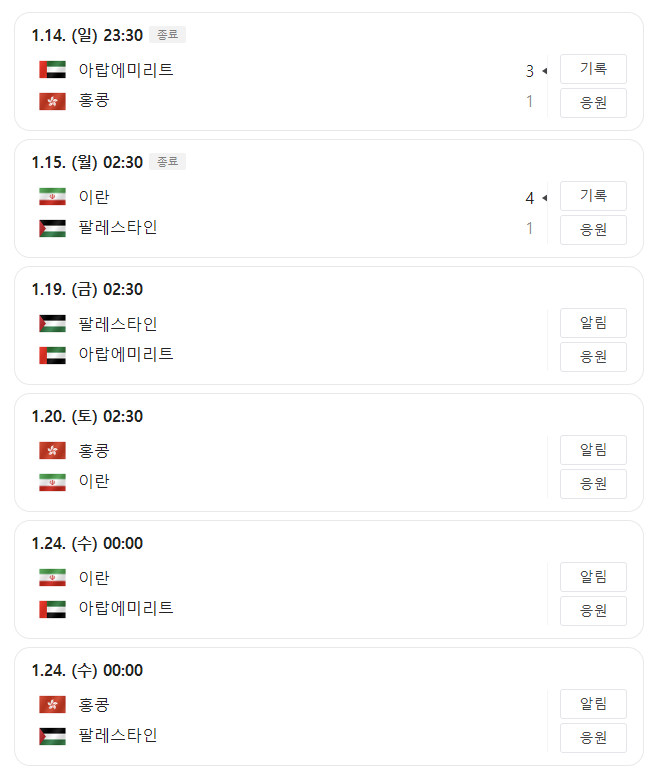 C조: 이란, 아랍에미리트, 홍콩, 팔레스타인