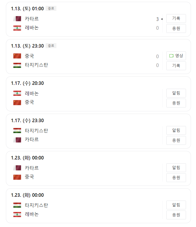 A조: 카타르, 중국, 타지키스탄, 레바논