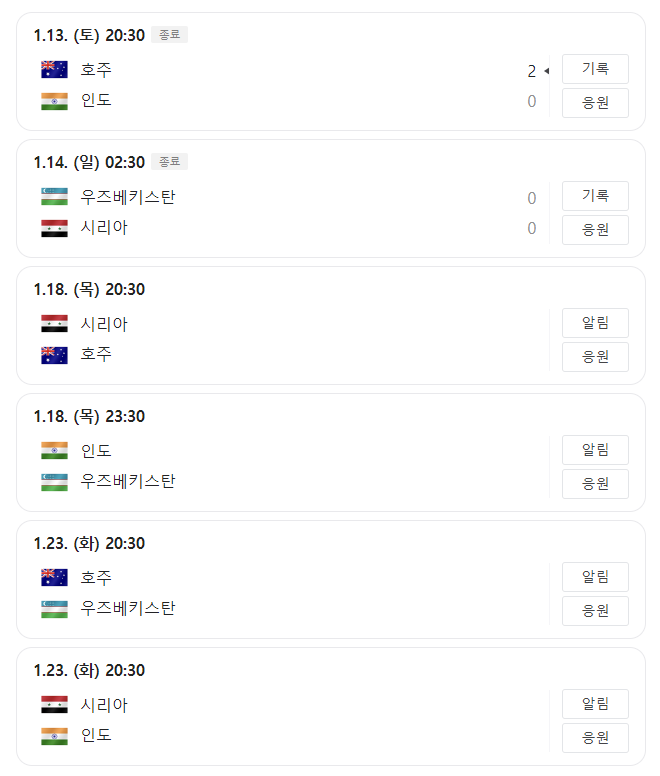 B조: 호주, 시리아, 우즈베키스탄, 인도