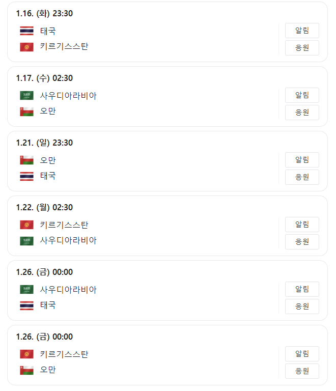 F조: 태국, 오만, 키르기스스탄, 사우디아라비아