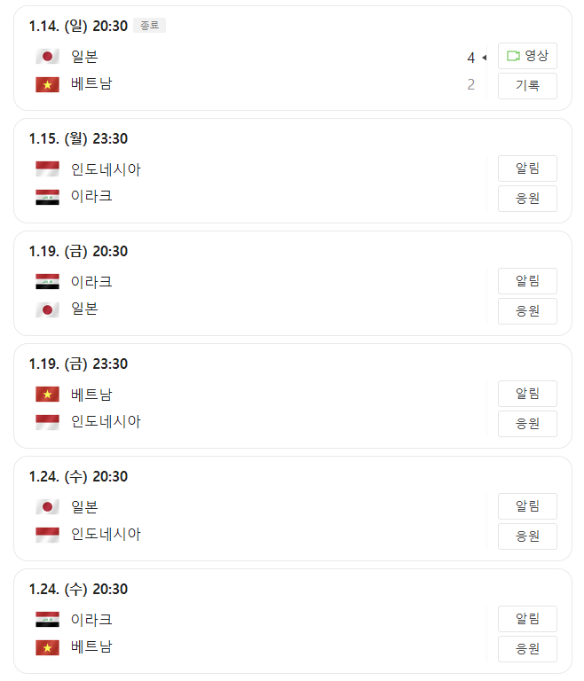 D조: 일본, 인도네시아, 이라크, 베트남