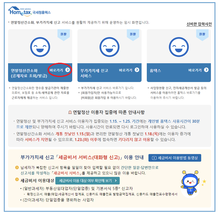 ■ 홈택스에 들어가서 연말정산간소화 바로가기로 접속하세요.